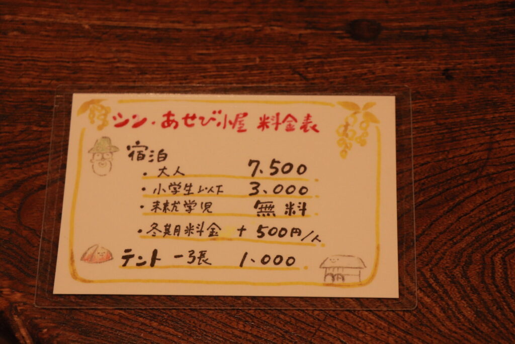 あせび小屋の宿泊料は下記画像でご確認ください。